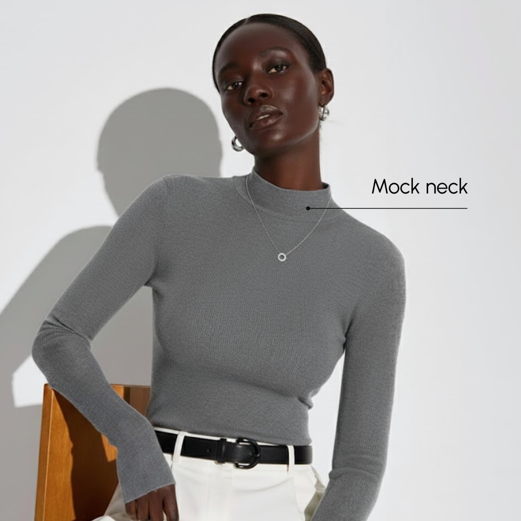 Slip on a soft mock-neck and take a quick look in the mirror. Then compare it to how you feel in a deeper neckline.